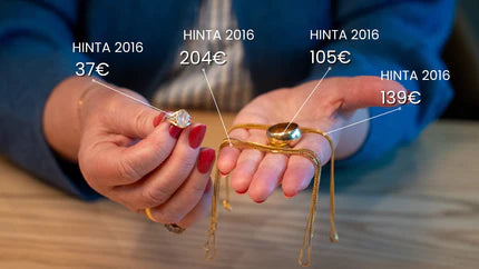 - vanhoja perintökoruja tai käyttämättömiä koruja, jotka ovat jääneet laatikkoon